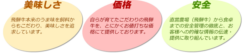 直営農場(飛騨牛)から食卓までの安全管理の徹底と、お客様への的確な情報の伝達・提供に取り組んでいます。
